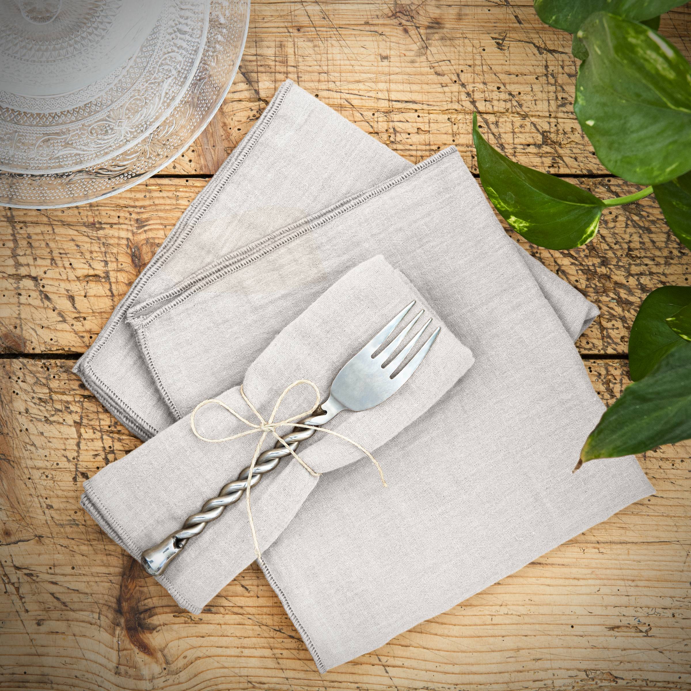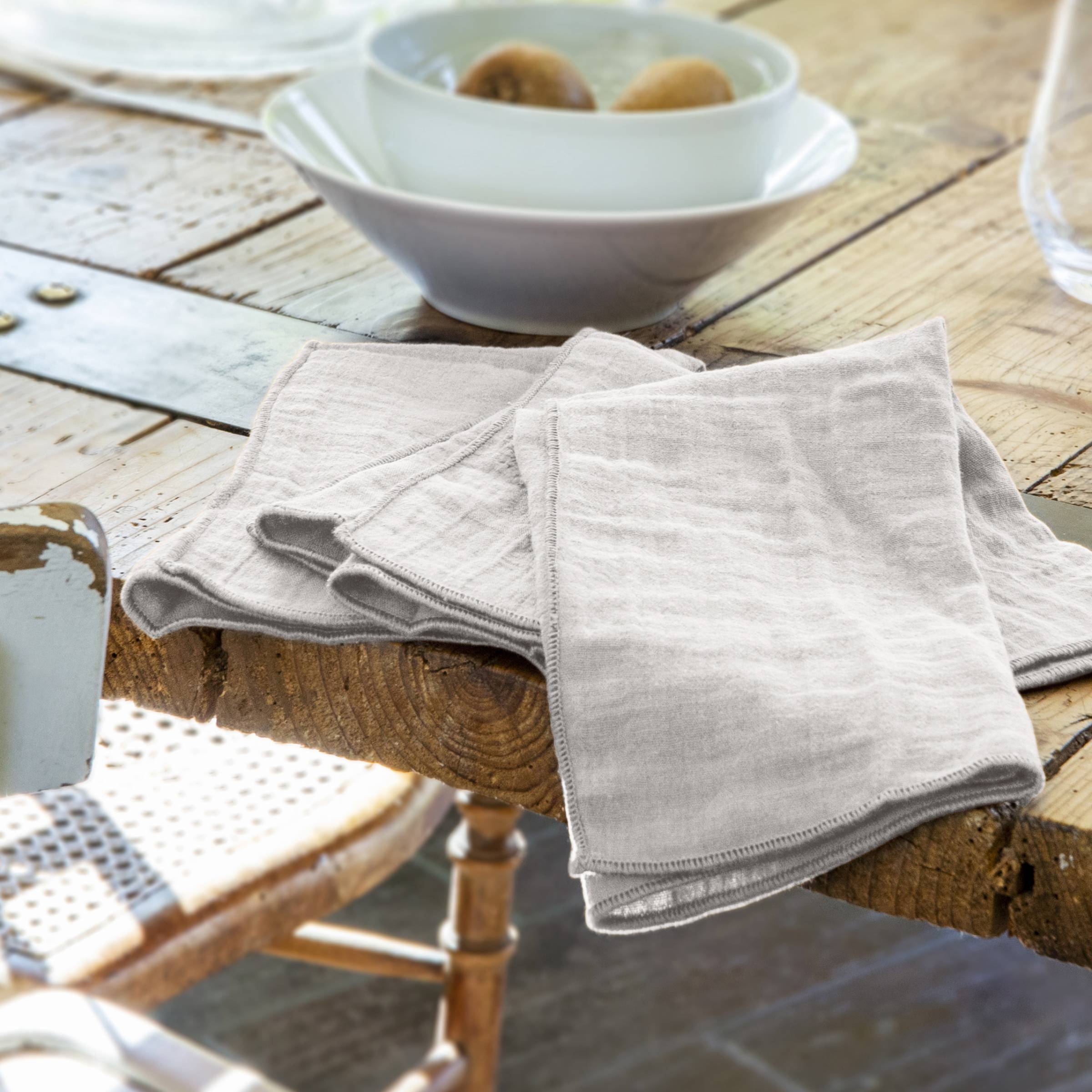 Die dezente Knitter-Optik dieser Servietten aus Musselin macht Bügeln überflüssig.