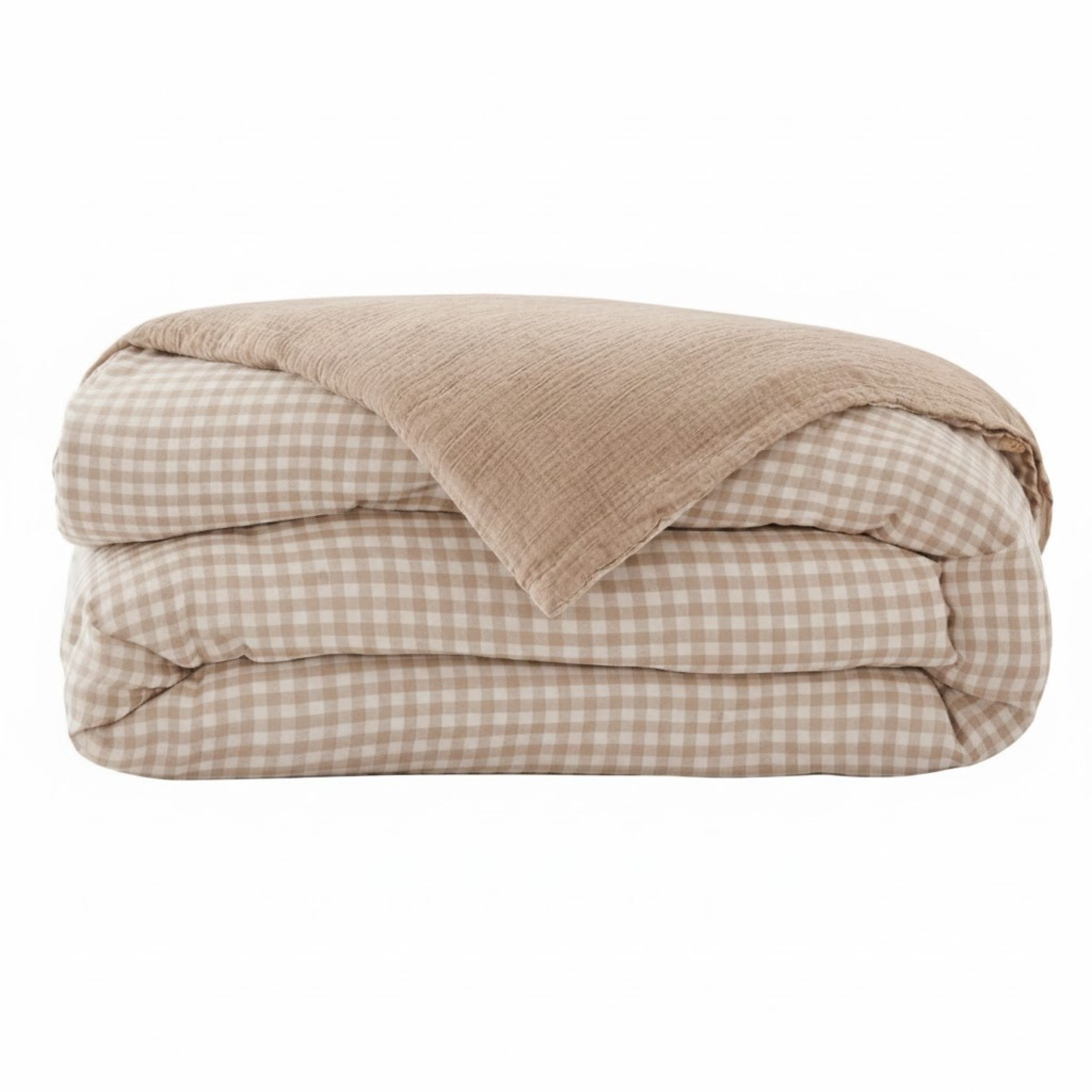 Druck: Wendbarer Bettbezug mit Vichy-Muster auf der Vorderseite und Uni auf der Rückseite.