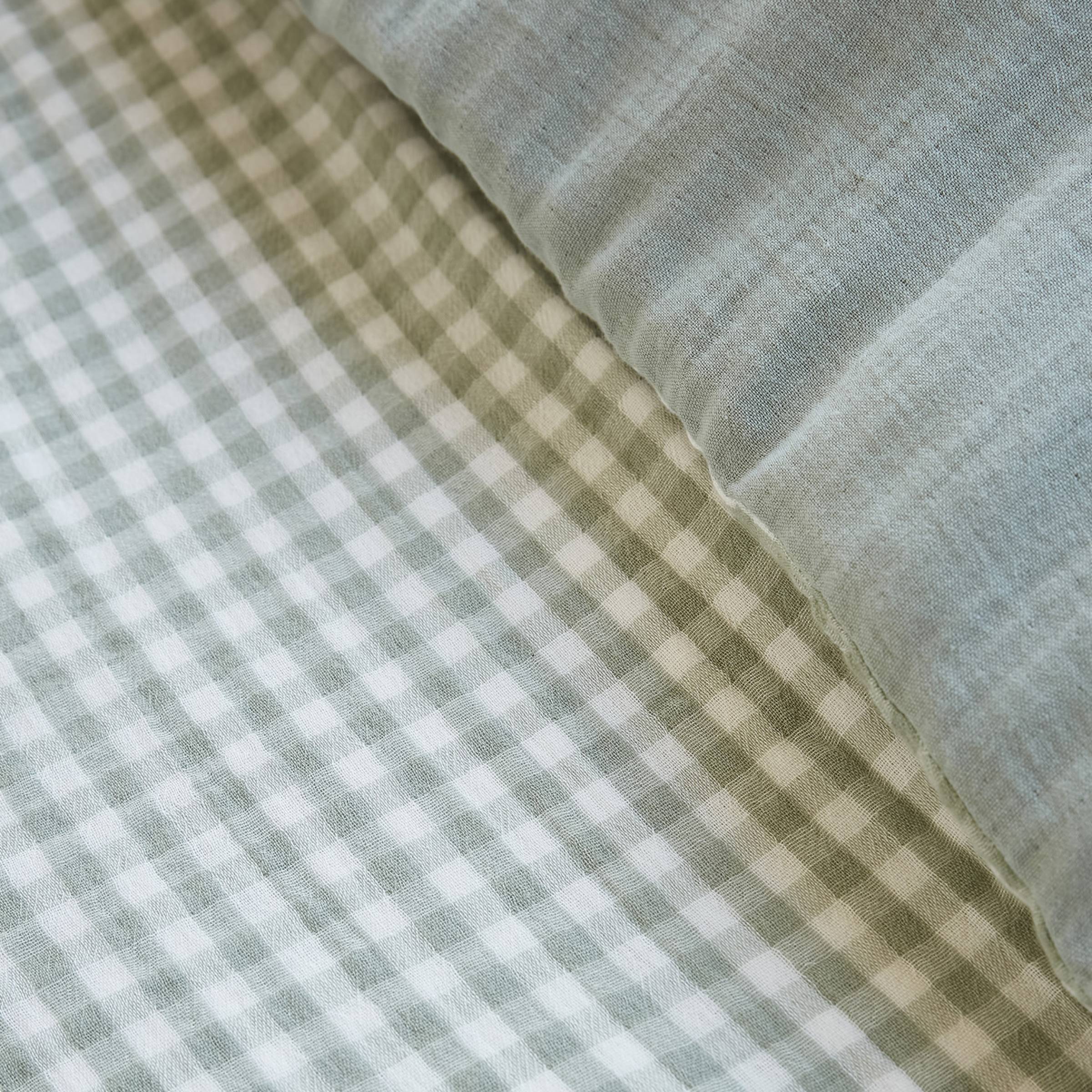 Der Gaïa vichy Bettbezug aus Musselin verleiht Ihrem Schlafzimmer Charakter und Charme. Wir lieben sein leicht Retro Vichy-Muster und sein so weiches und authentisches Material. Entdecken Sie die komplette Gaïa vichy Heimtextilien-Kollektion.