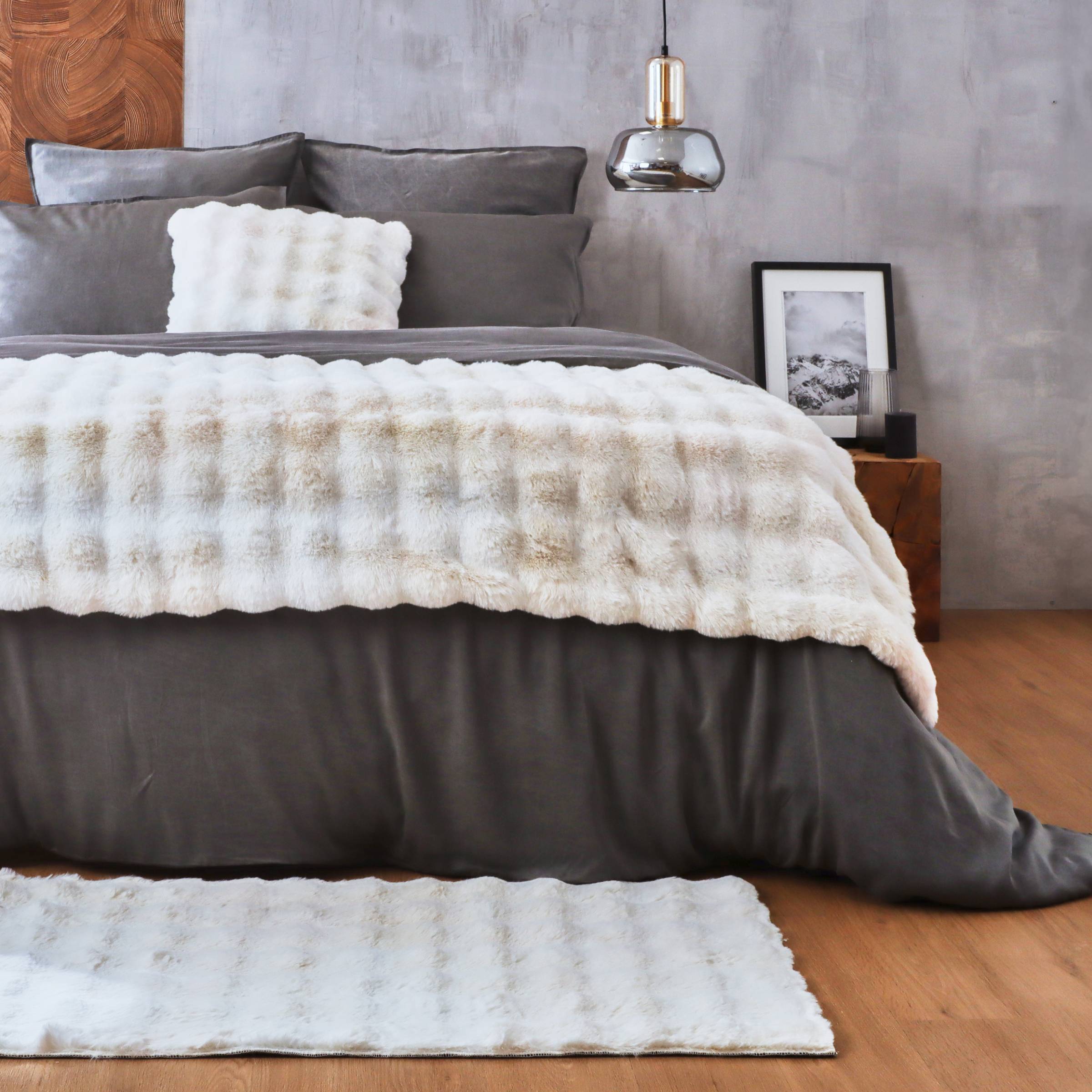 Diese Toronto Kunstfell-Bettdecke in Elfenbein wird Sie mit Weichheit und Wärme umhüllen. Ihr Berghüttenstil verleiht Ihrem Schlafzimmer eine gemütliche Note.