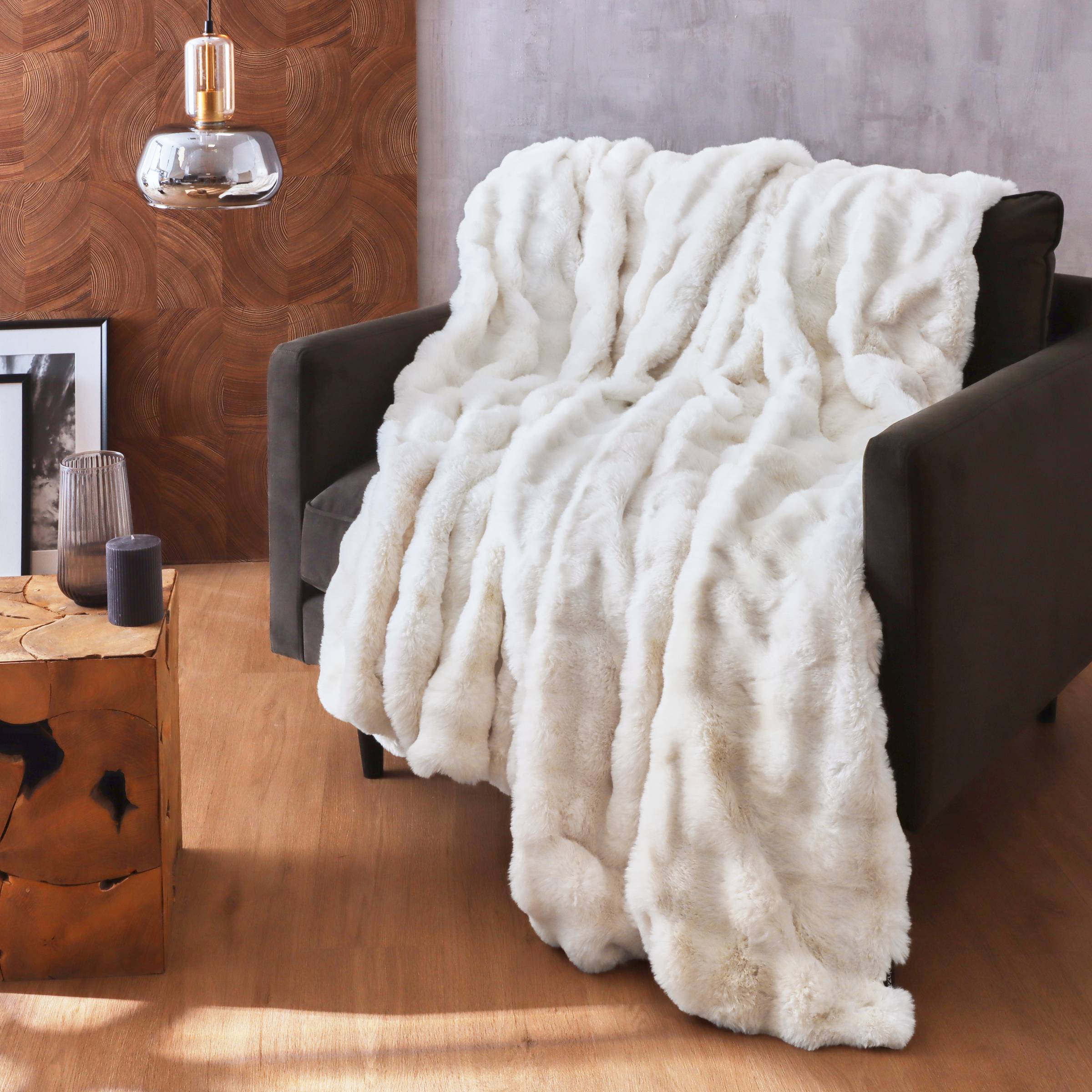 Dieses weiche und warme Toronto Elfenbein-Plaid ist ideal zum Einkuscheln an kühlen Abenden. Sein Kunstfell-Effekt verleiht Ihrem Interieur eine gemütliche Note und fügt einen Hauch von Eleganz hinzu.