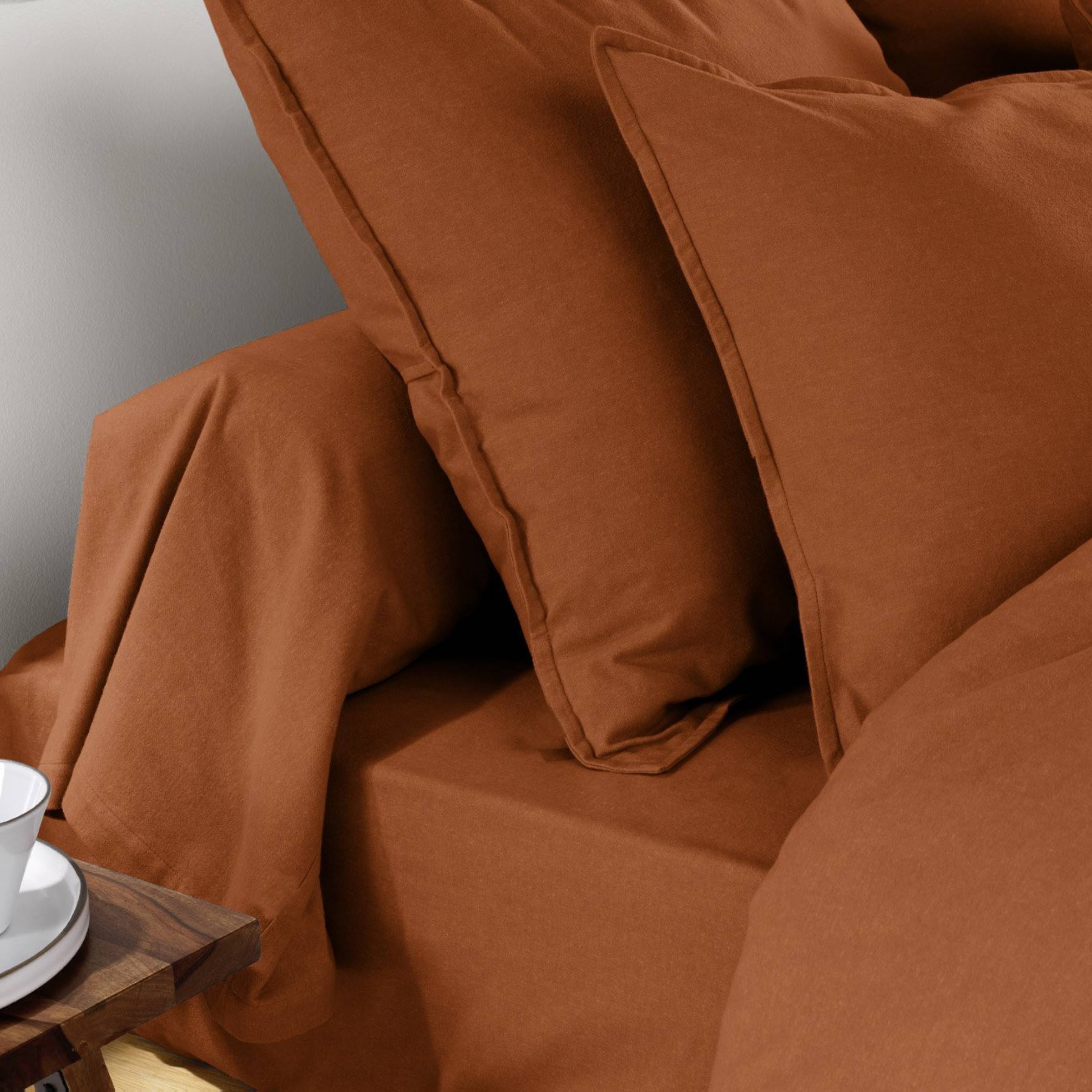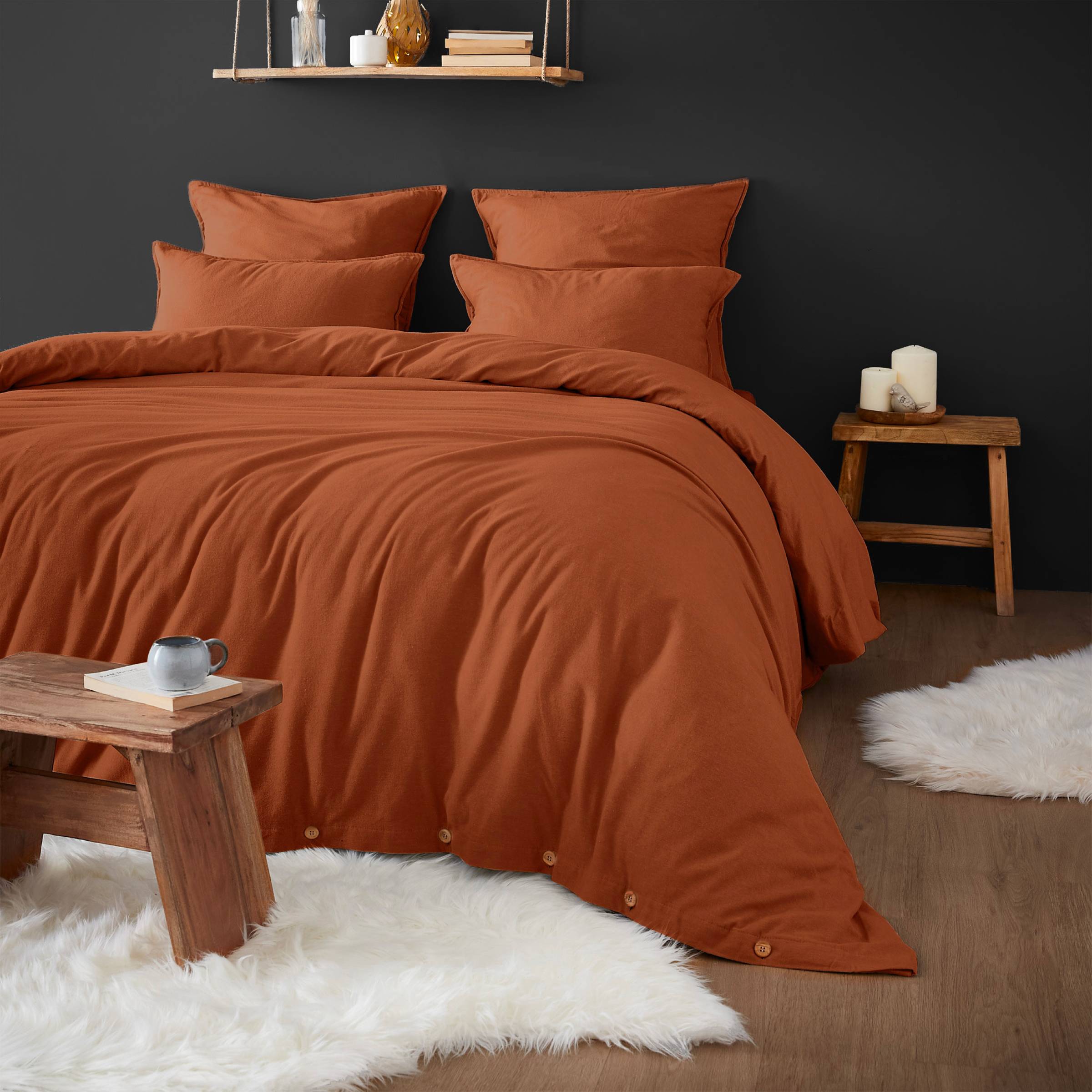 Die quadratische Kissenbezug Nina aus Baumwollflanell bietet umhüllende Weichheit und wohltuende Wärme. Ihre Terrakotta-Farbe bringt eine warme Note in Ihr Schlafzimmer. Ideal für Herbst- und Winternächte, lädt sie zu einem ruhigen und erholsamen Schlaf ein.