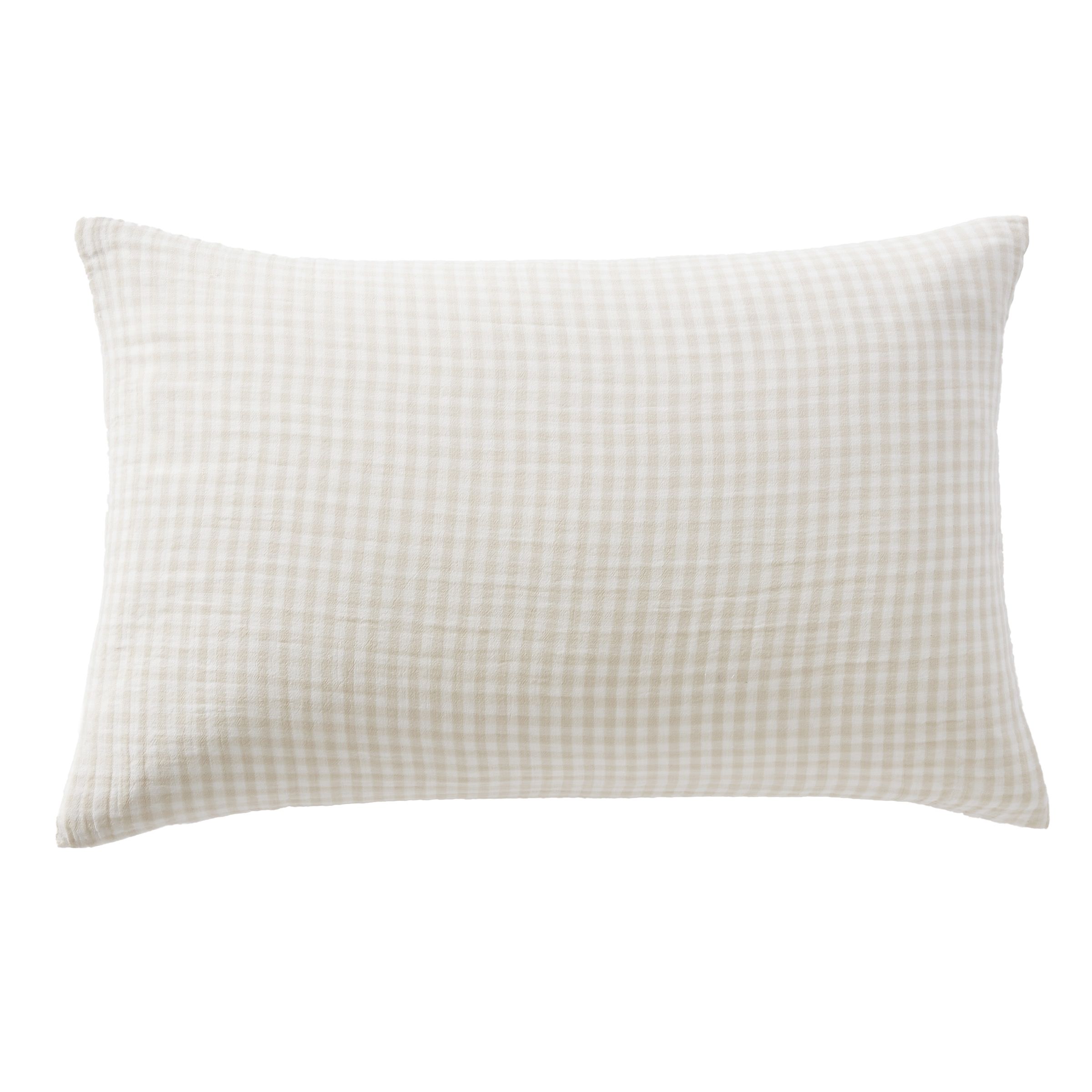 Gönnen Sie sich einen erholsamen Schlaf mit unserem Kissenbezug Gaïa Vichy. Seine unvergleichliche Weichheit und sein elegantes Design mit beige Vichy-Karomustern bringen eine Note von Ruhe in Ihr Schlafzimmer. Aus Baumwollgaze gefertigt, verspricht er Ihnen sanfte und komfortable Nächte.