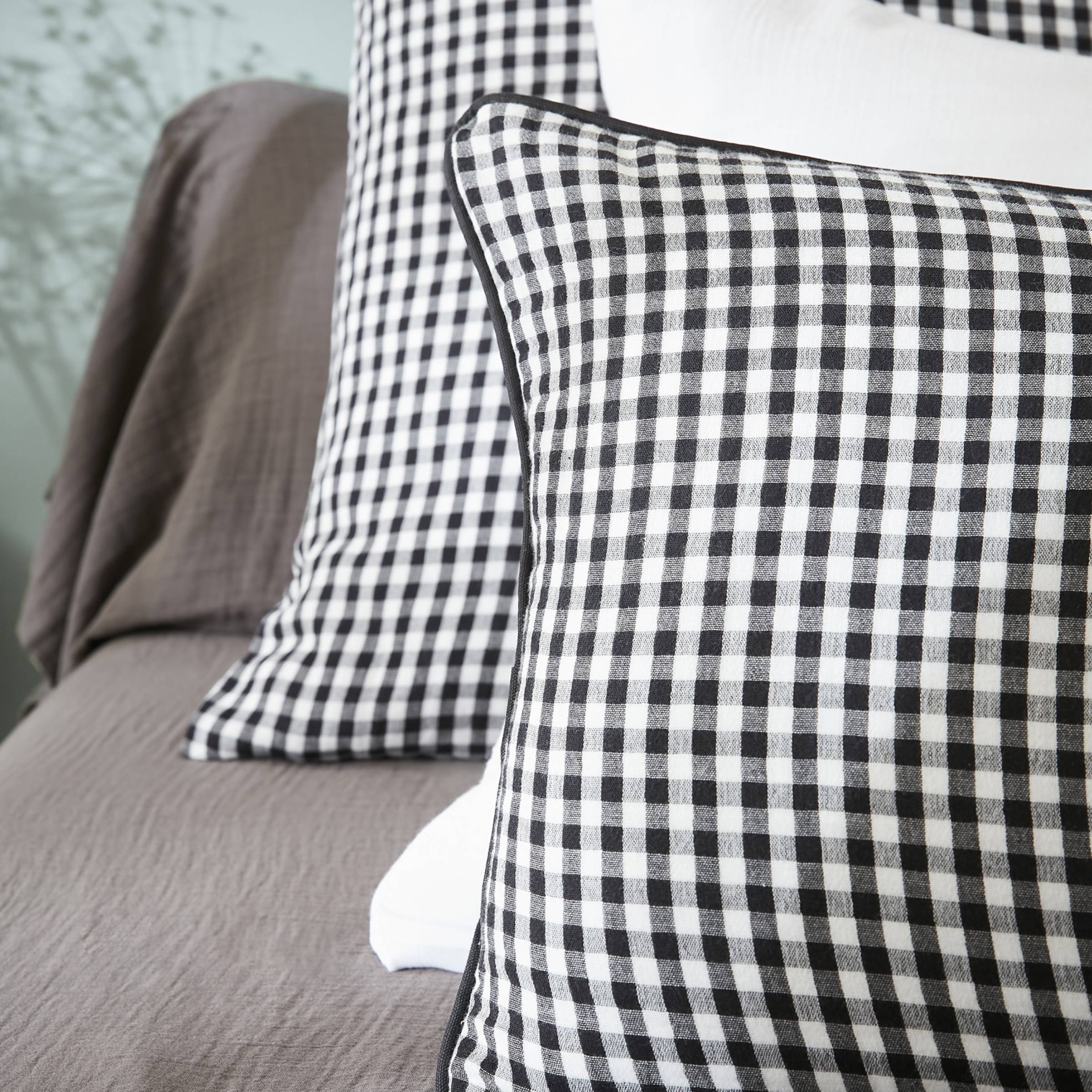 Entdecken Sie den Komfort und die Weichheit unseres Gaïa Vichy Kissenbezugs. Sein Musselin umhüllt Sie für ruhige Nächte. Sein schwarz-weißes Vichy-Karomuster verleiht Ihrem Schlafzimmer eine grafische Note.