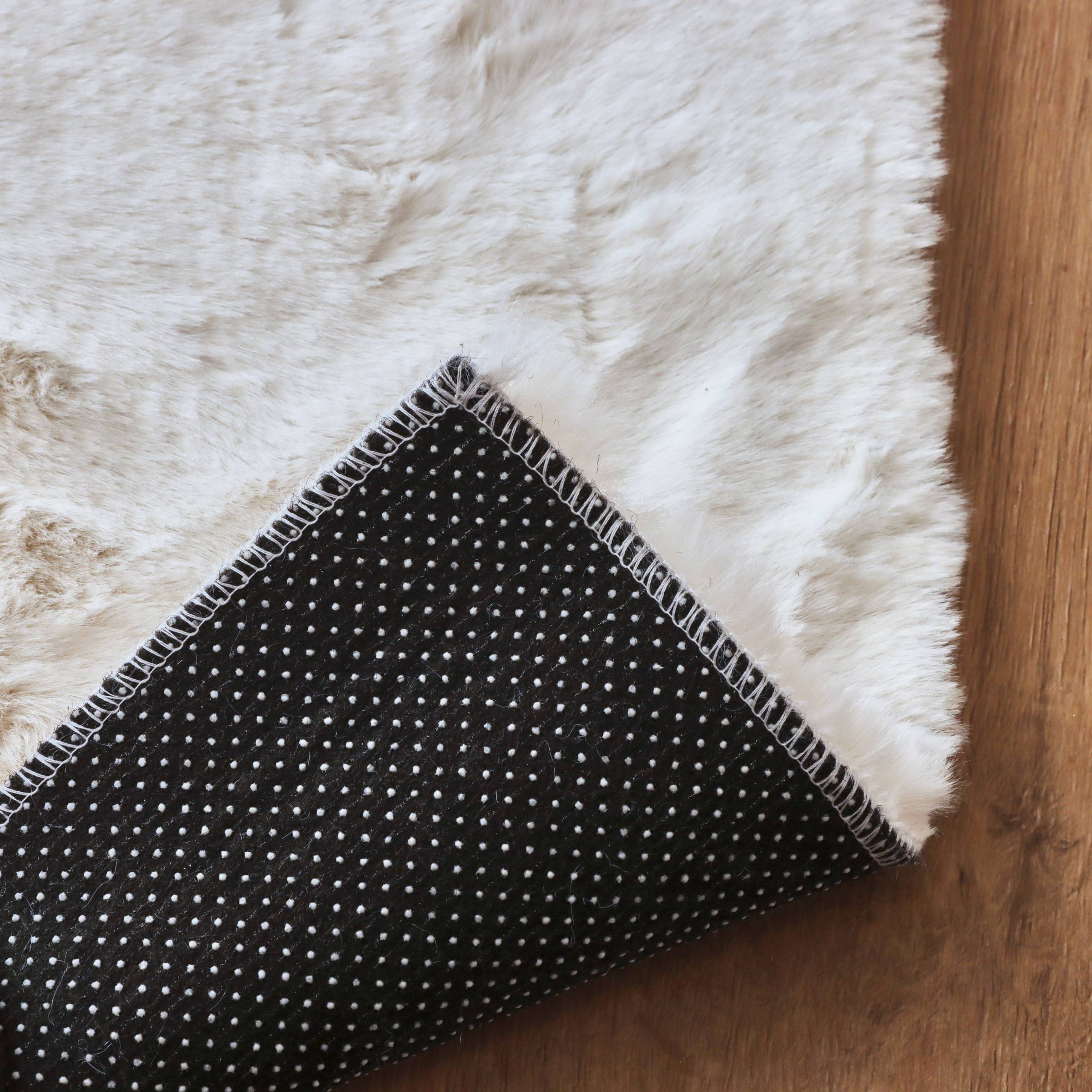 Dieser 140 x 200 cm große Finn-Teppich in Weiß ist die ideale Wahl, um Ihrem Zuhause eine Note von Weichheit und Wärme zu verleihen. Sein Kunstfell bietet ein Gefühl von Komfort und Weichheit unter Ihren Füßen. Perfekt für Ihr Wohnzimmer oder Schlafzimmer, lässt er sich leicht in jede Art von Dekoration integrieren.