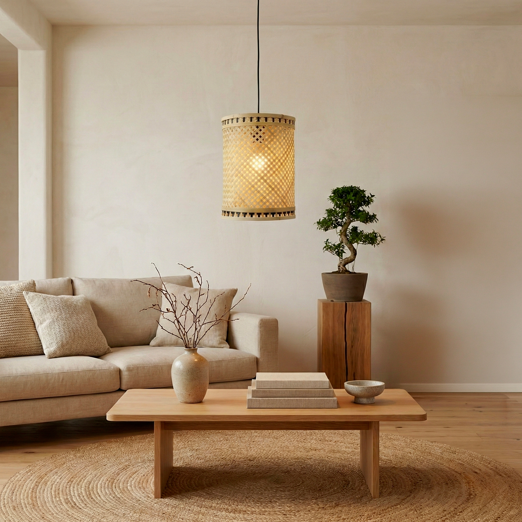 Die Hängelampe Estepona aus geflochtenem Bambus strahlt ein sanftes und warmes Licht aus. Ihr naturfarbenes und elegantes Design passt perfekt in jede Art von Interieur und verleiht ihm eine originelle und raffinierte Note. Eine funktionale Beleuchtung, die nicht an Stil fehlt!